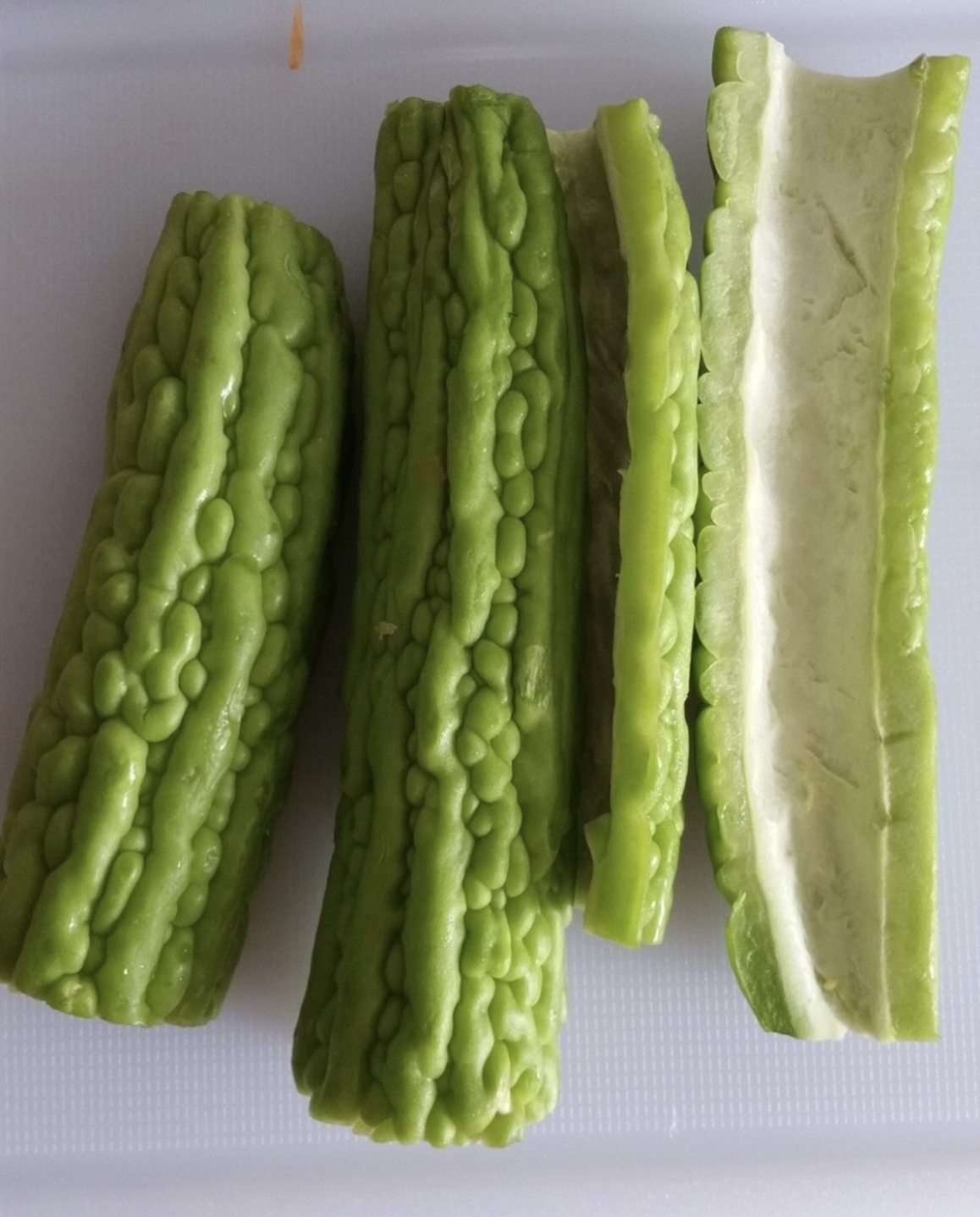 我在教大家一个小技巧挑选苦瓜的时候那种看着新鲜水分足颜色鲜亮的吃起来口感才好