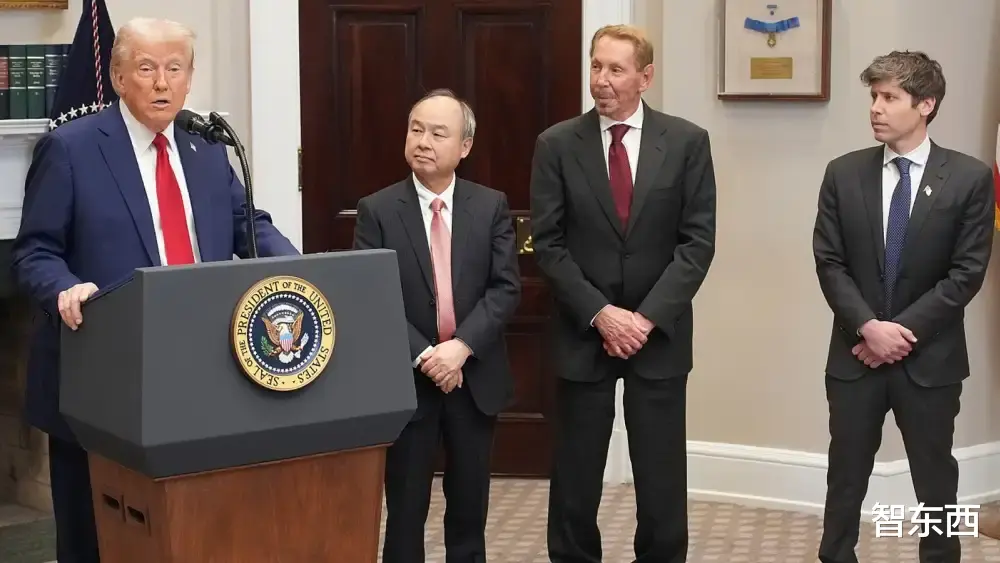 ▲从左至右分别是:美国总统唐纳德·特朗普(Donald Trump),日本软银CEO孙正义,黑石集团联合创始人、董事长兼CEO斯蒂芬·施瓦茨曼(Stephen Schwarzman),OpenAI创始人兼CEO萨姆·奥尔特曼(Sam Altman)