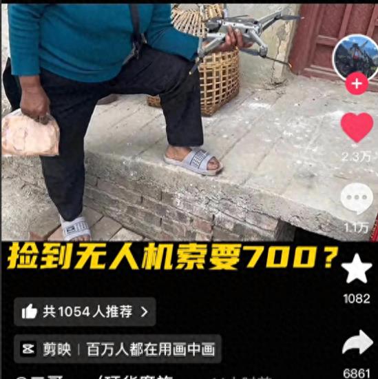 那就是阿婆并没有主动归还无人机,反而提出要收取700元的“好处费”,她说捡到这玩意儿就是缘分,给700块钱,就把东西还你。