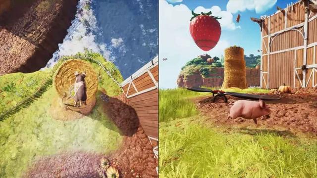佐伊的奇 幻场景 以下要说的内容,会涉及比较多的游戏玩法,如果你想亲自揭开游戏的神秘面纱,不妨现在就退出文章。 首先是角色的丰富性,《双影奇境》虽以人为主角,但仅仅在前 4 个小时的游戏时间,就能体现人与不同动物、大自然的各种连接与脑洞,也许前一刻玩家还是赛博忍者在科幻空间激战,下一幕就来到充满水果与泥浆的家猪农场,化身家猪解开谜团甚至最后成为美味热狗,光看我打这段文字已经够无厘头,但是放在《双影奇境》的背景下却没有丝毫逻辑问题。