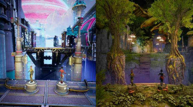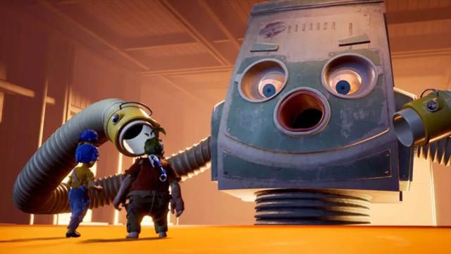 米欧的科幻场景 不同于前作《双人成行》所营造的缓解家庭裂痕,营造亲密关系的主基调。该作融合奇幻和科幻元素,并以一种数据库想象力进行“缝合”,所以尽管你才刚玩两个小时,玩家已经能真切体现到极为丰富的游戏性,紧凑的剧情推动着玩家在不重复的美学主题轮番来回穿梭,让游戏完全没有尿点。