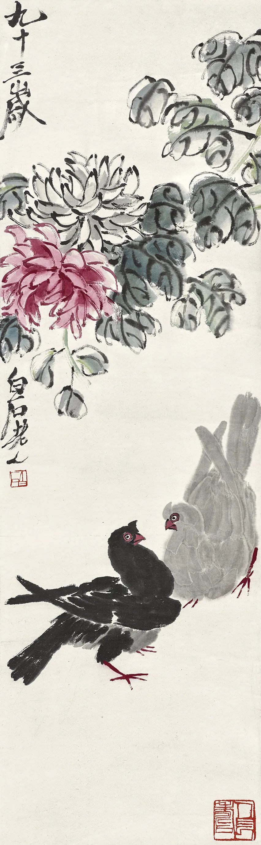 齐白石双鸽图98.8×40cm1951年辽宁省博物馆藏
