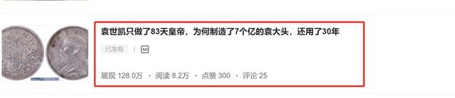 在1914年,袁世凯发行袁大头,它发行这枚银元,是有着掌控国家经济的野心,短短83天,制造出了七个亿的数量,我之前文章有写,大家可以进我主页