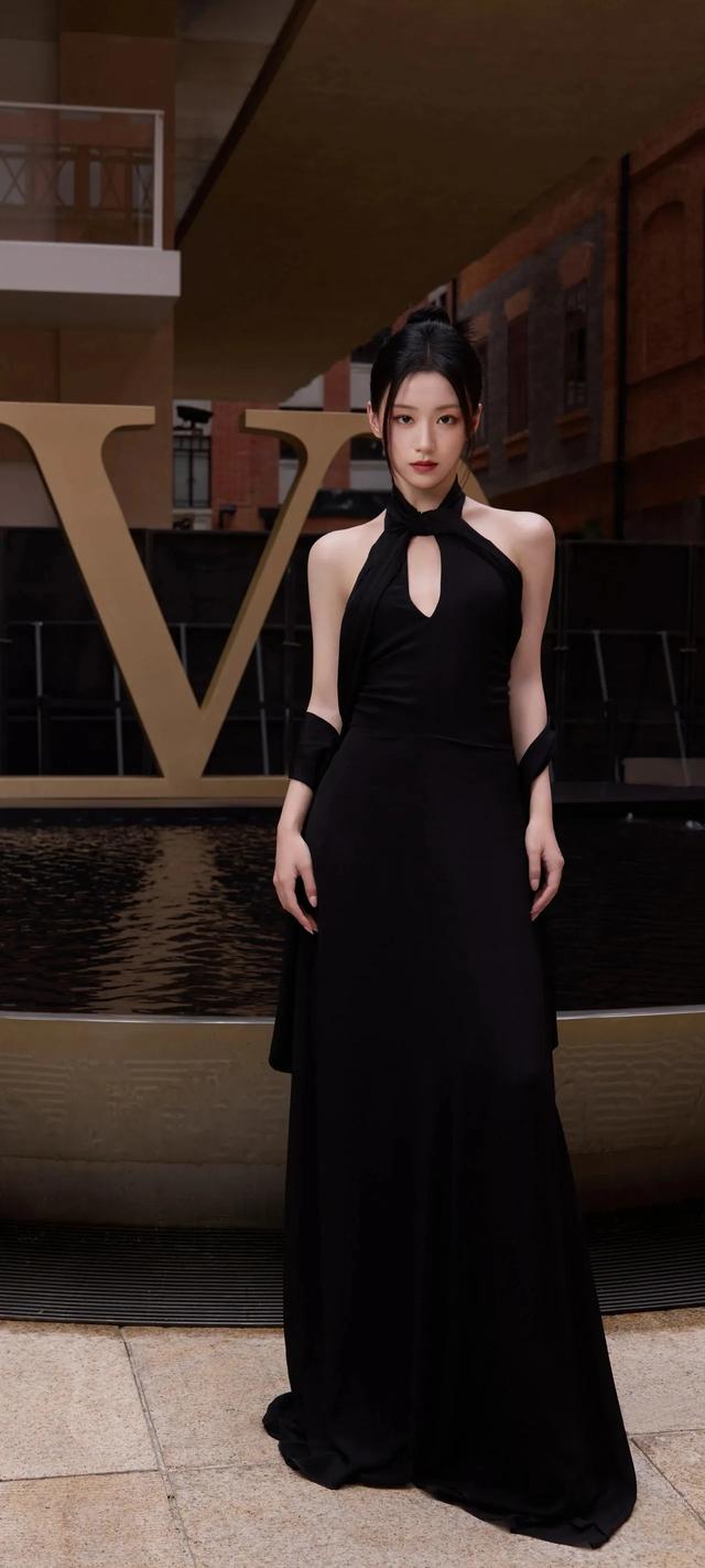 包上恩,黑裙香肩气质优雅,温柔小女人