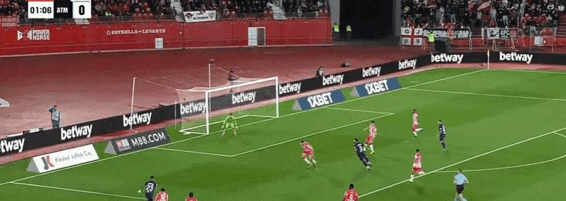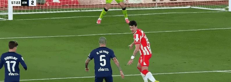 而就在我们为巴萨的胜利欢呼时,转播切换到了马竞客场对阵阿尔梅里亚的比赛。