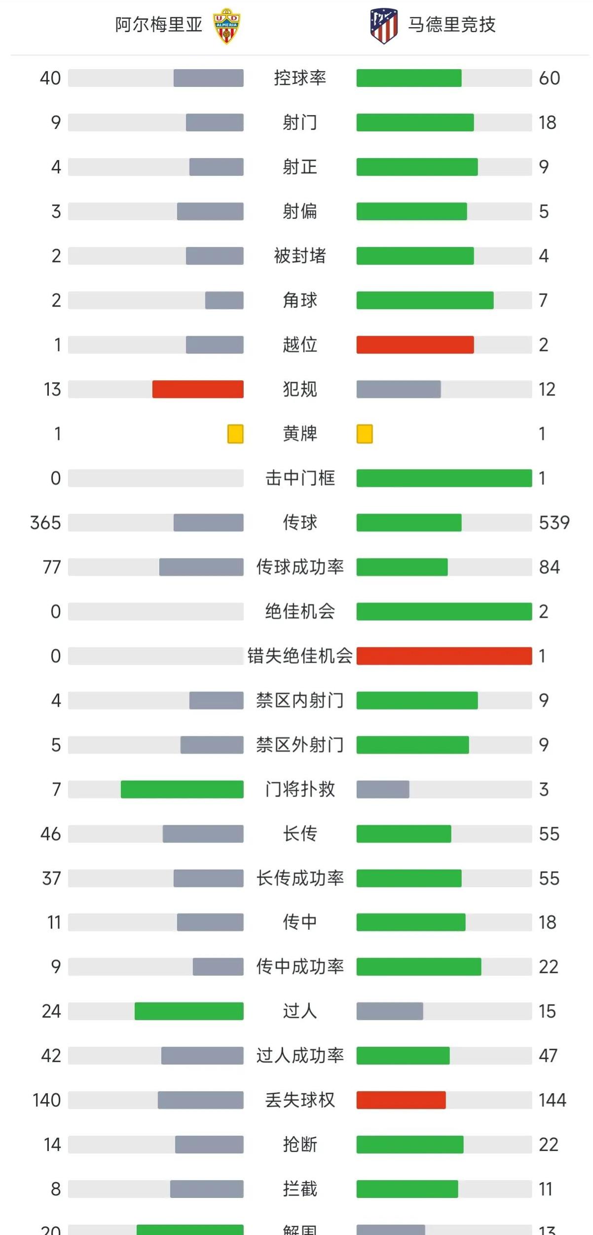 开场仅仅两分钟,雷尼尔多带球突破后倒三角传中,科雷亚一记射门,马竞先声夺人,1-0领先阿尔梅里亚。