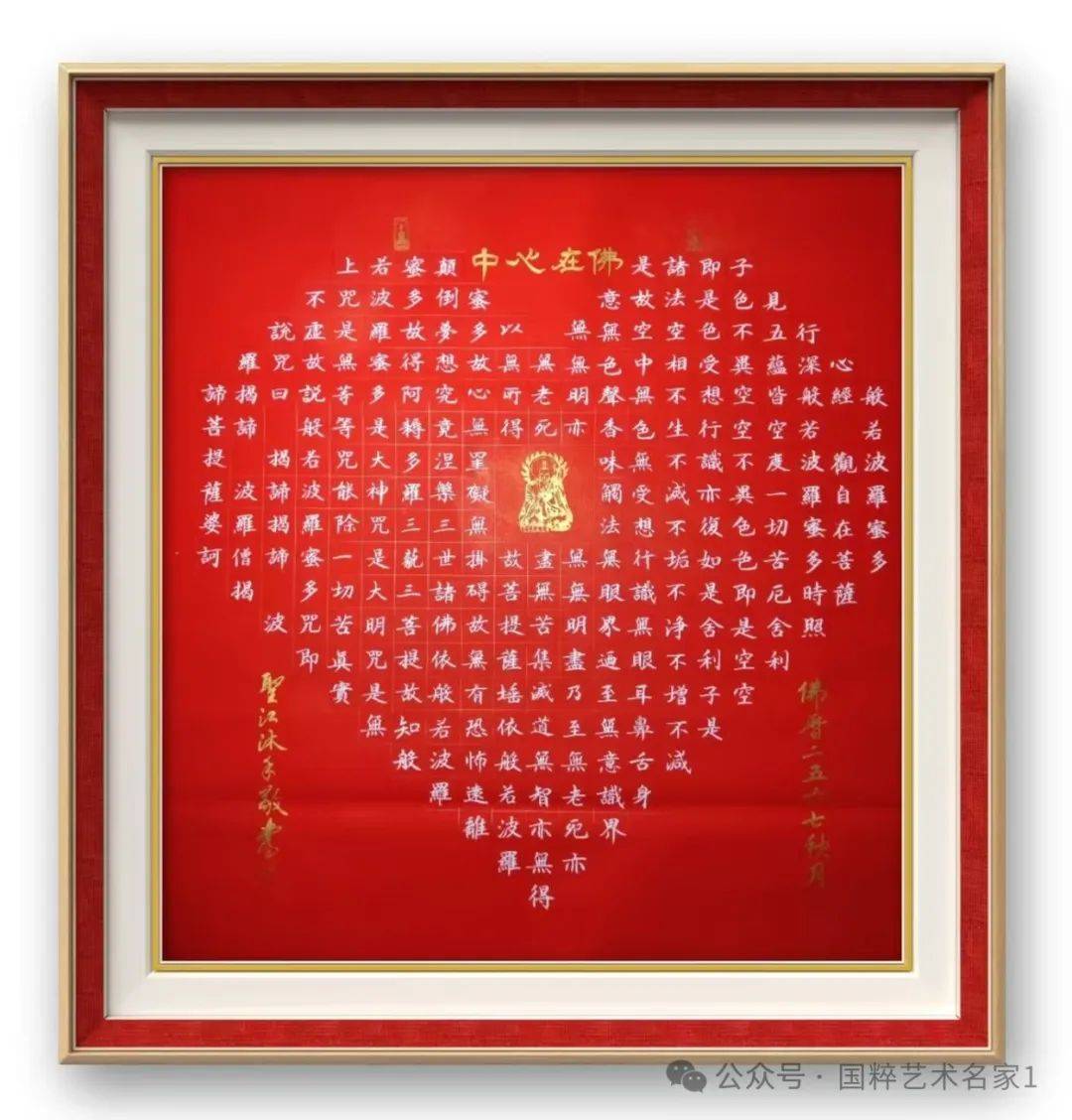 “字如其人,境由心生”,纵观古今书法名家作品,其文化素养、心胸秉性、无不淋漓尽致通过作品的行间布局、字的间架结构呈现在我们面前,老师的书法,风格浑厚朴茂,笔法圆润丰颐,笔势舒畅悦目,和其宽厚仁和的性格相映成章,宅心仁厚、有着极深佛缘的他,博学多识,其书法更是别具一格,特别是书写的心经,字里行间,仿佛一朵朵金莲清素端庄,极好地表现了佛家经典的精神内涵,静心品鉴,如沐兰室,似禅音之萦耳。无论是他为寺庙还是书法收藏家所书写的《心经》,都给人清心寡欲,善念正信的庙堂之瑞气,给观赏者凝神敬肃,超凡脱俗,“五蕴皆空”之感,使人以心灵的濯洗净化。