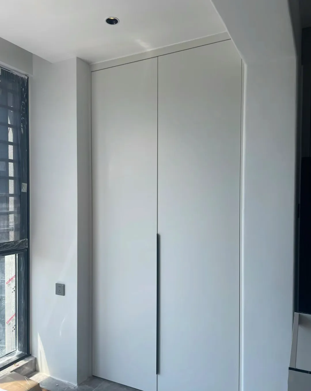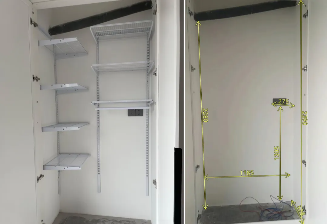 在装第3套房的时候就在阳台尽头做了800库,当然了,800库做在玄关是最方便好用的,但因为玄关不够大只能放在阳台,利用空调外机位置设计了不大的800库。有了这个800库,简直是家里的杂物消失术,可以把孩子的篮球、足球、老公的折叠自行车、以及出差时要用的旅行箱等,全都能塞在里面,甚至层板还可以放日常清洁工具,这些层板都是可以自由调节,整个家干净多了。