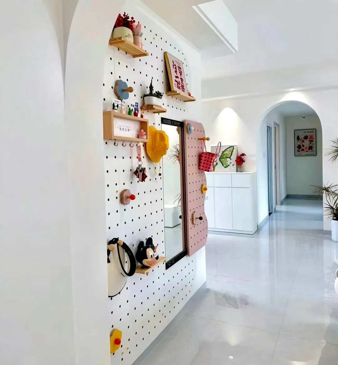还有家里其它墙面也不要浪费,装上洞洞板,墙面收纳架等,家里的收纳简直满分。