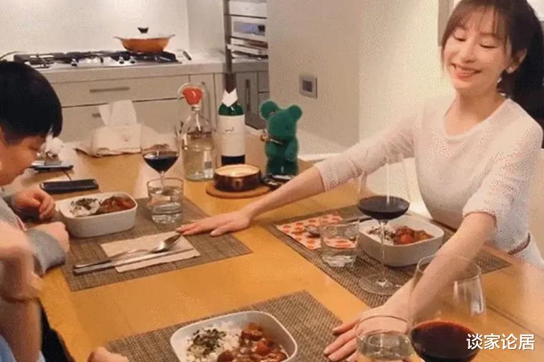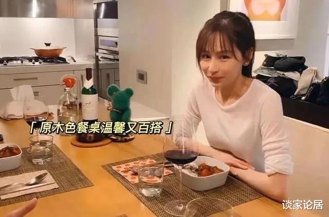 由于厨房做了开放式,与餐厅合并为一个空间,因此显得很宽敞。王心凌平时也会招呼亲朋好友到家里吃饭,摆放了一张原木餐桌,尺寸比较大,可以同时容纳8人一起就餐。