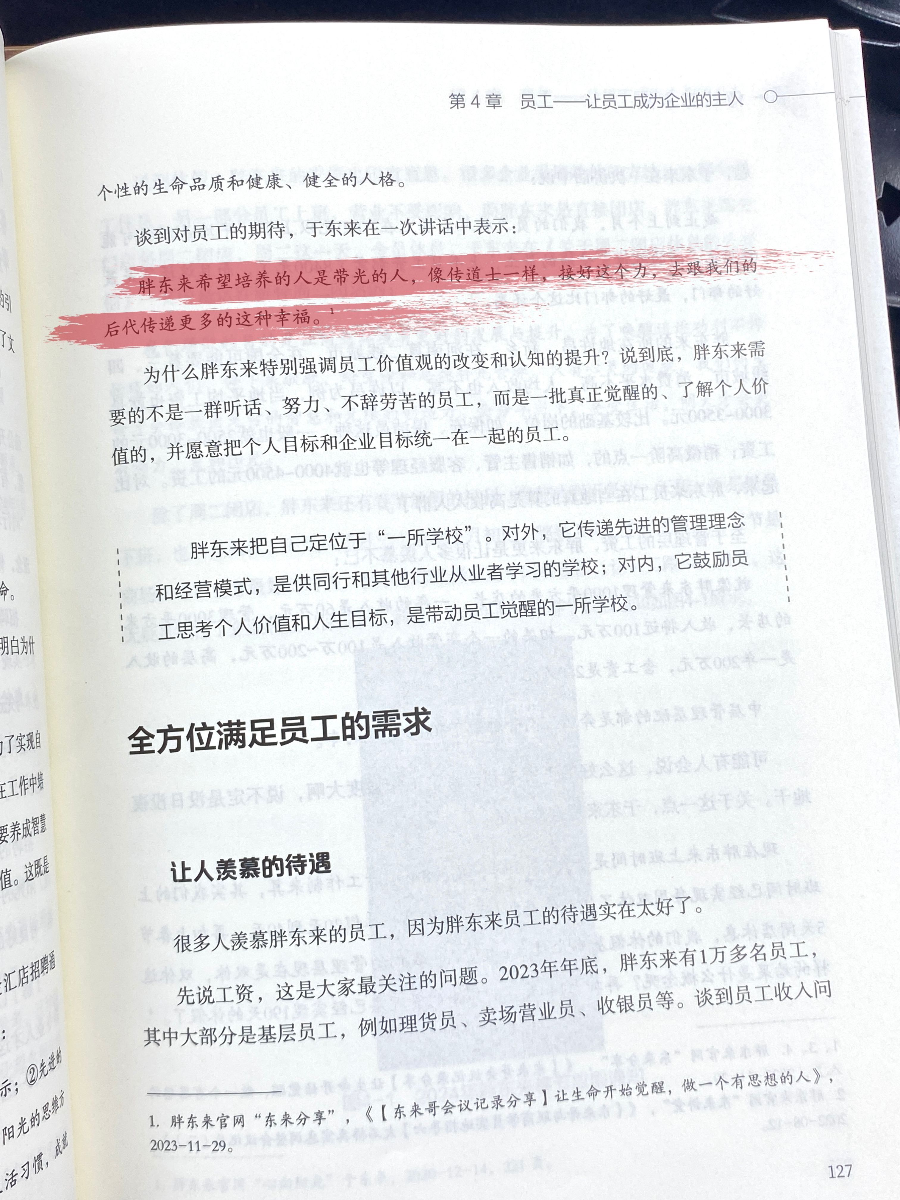也就是说,一个人进到胖东来,不是埋头干活就行了,他首先要想明白为什么干,怎么干,以及自己工作的价值在哪里。
