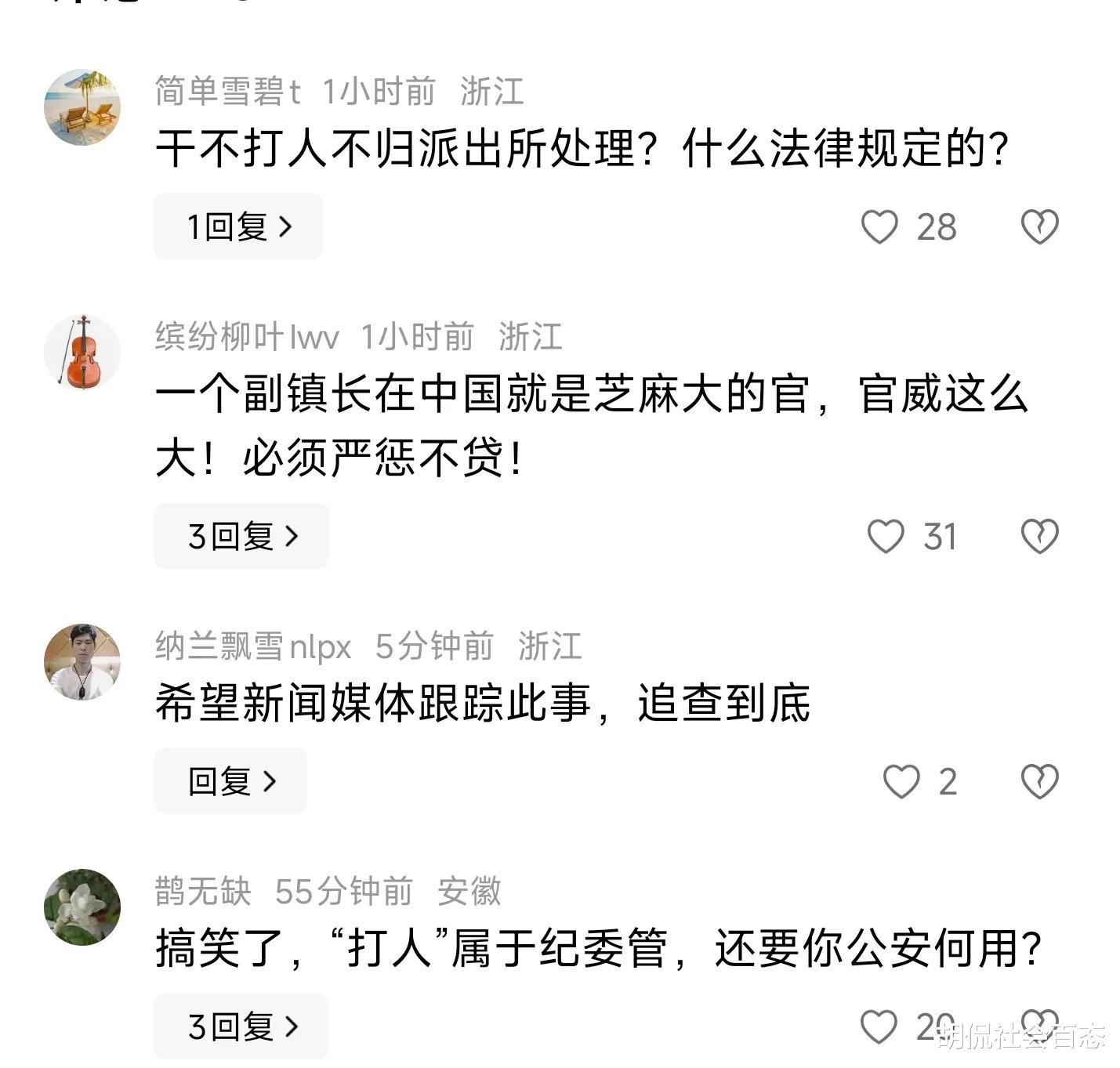消息传到网上,评论区直接炸了锅。大部分网友气得不行:“副镇长是人民公仆还是土霸王?手中权力是让你打人的?”有网友翻出法理常识:“打架斗殴归派出所管,这是老百姓都知道的事,怎么到了副镇长这儿就‘特殊化’了?难道真像老话说的‘官官相护’?”还有人晒出身边经历:“我们村的干部也是这样,稍微问两句就摆官威,好像老百姓欠他的,这种人根本不配当干部!”
