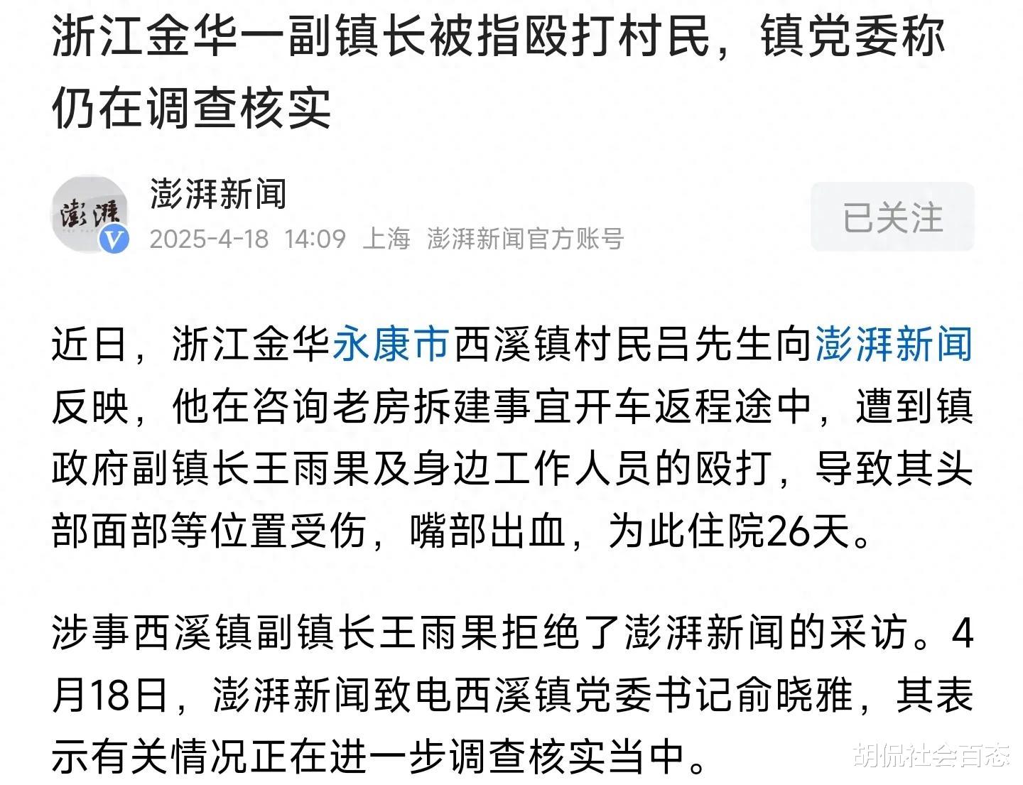 这事最扎眼的就是“权力任性”四个字。基层干部直接面对群众,一举一动都代表着政府形象,要是把手中权力当成耍威风的工具,把百姓诉求当成麻烦事,甚至用暴力解决问题,那就是忘了“为人民服务”的初心。现在事情闹大了,舆论盯着、法律等着,必须给公众一个清楚的交代:打人者该承担什么责任,相关部门有没有包庇纵容,后续怎么避免类似事件。法治社会容不得“官大一级压死人”,就算是芝麻官,也得在法律框架里办事,不然位子坐得再高,也得摔下来。希望这事别“调查核实”就没了下文,真正让老百姓看到:法律面前,没有特殊公民;权力之上,还有公平正义。
