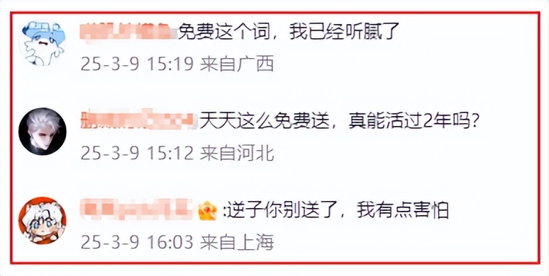 那么,大家来说说怎么看待逆水寒天天白送的行为呢?