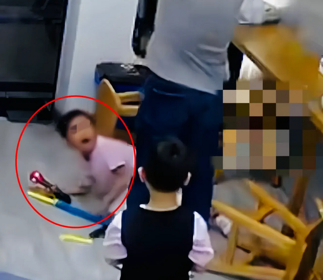 事件经过5月29日,据网传一段餐馆内的监控视频,视频中两名小孩手里拿着玩具在玩耍,突然一名黑衣小孩首先拿着玩具区敲击粉色衣服男孩的头部,而这旁边男孩的家长看着,并没有阻止。