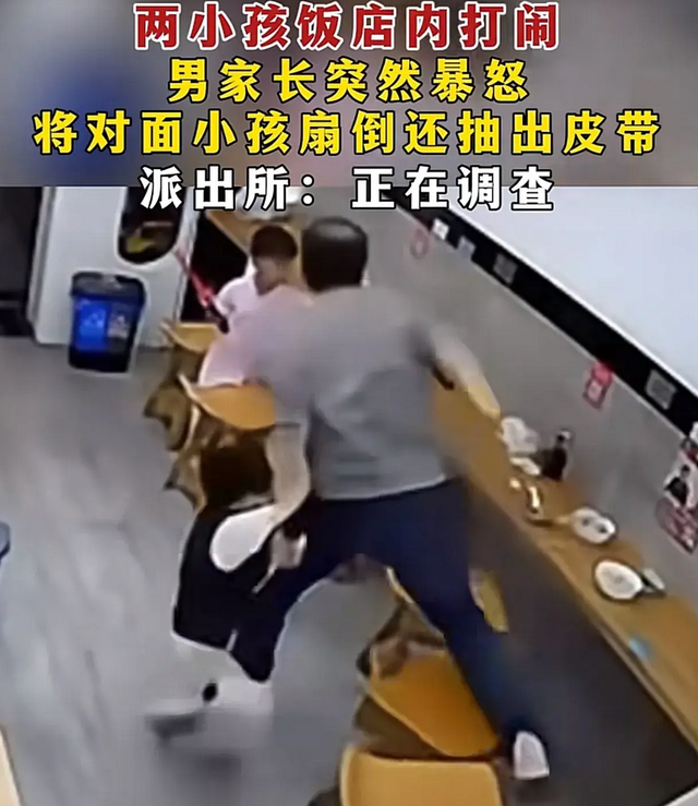 这名家长还没放手,甚至直接抽出了自己皮带,这时候粉色小孩的家长来了,疑似是饭店的工作人员,将小孩拉进了里间。
