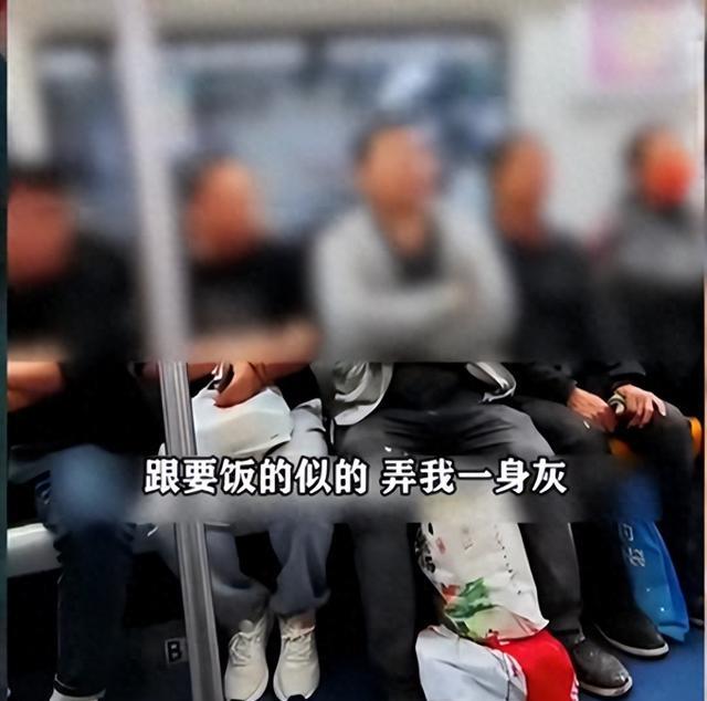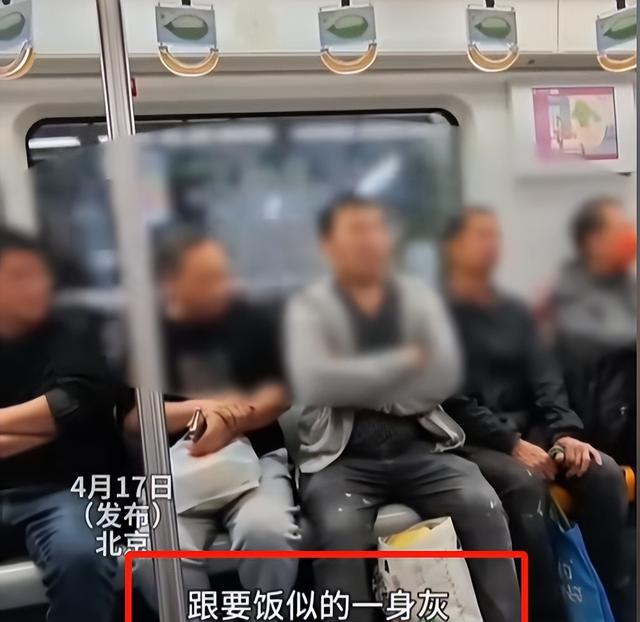 可以说这位农民工已经非常有素质了,而且他面前还有两个编织袋,为了不让编织袋上的灰尘影响大家,他全程都在用双腿夹住袋子,可以看出来是一位非常朴实的人。