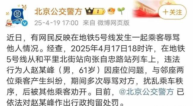 信息来源:北京媒体锐评男子地铁辱骂他人:北京地铁永远欢迎沾着泥巴的普通劳动者——2025-04-21 11:27·澎湃新闻