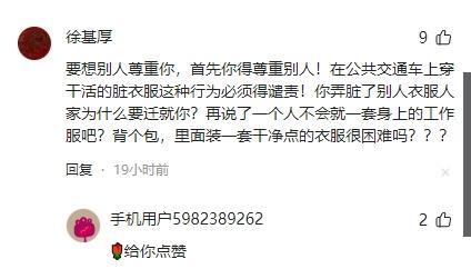 他表示自己曾经也是打工人,但是会在下班之后换上一套干净的衣服去乘地铁,话里话外都是对这位农民工的嫌弃。