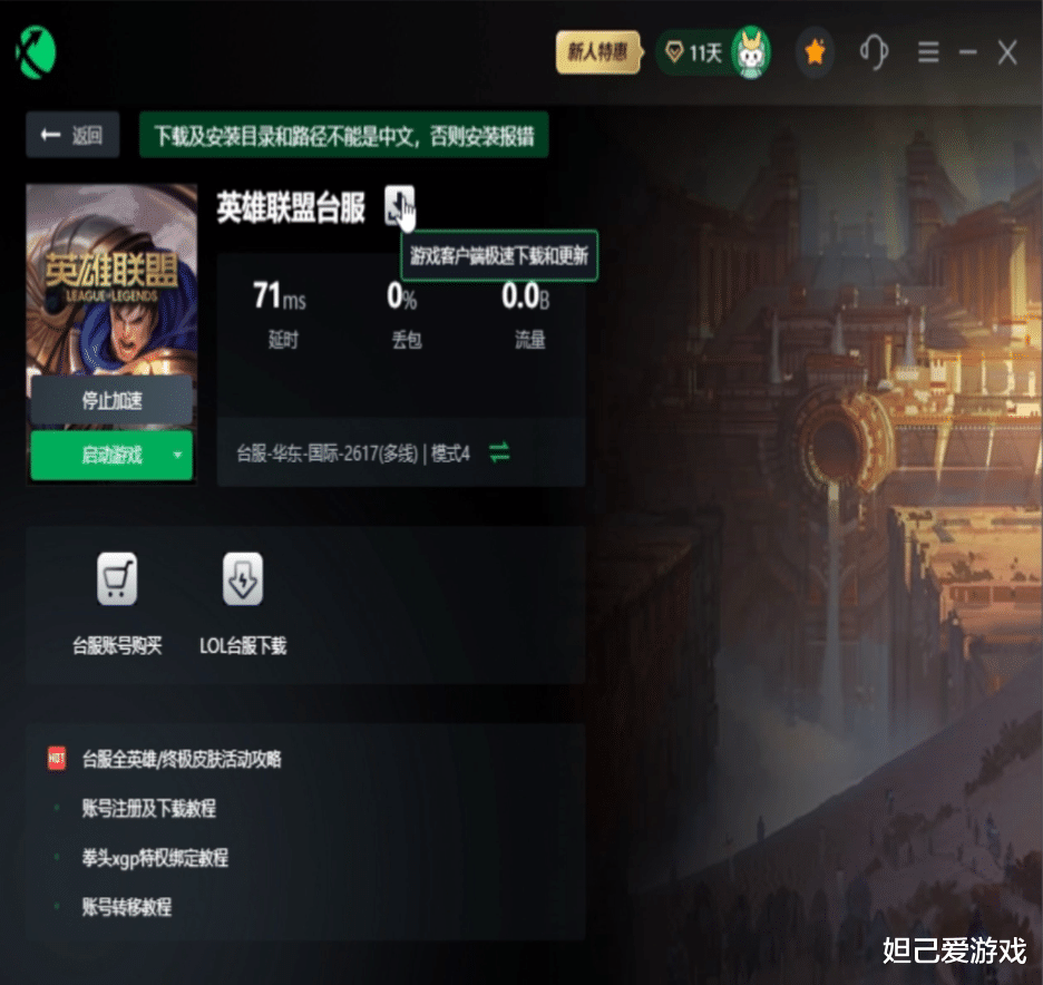 在国内一众加速器品牌中,迅游的资历很老、且经过迅游加速后的游戏环境也会变得非常稳定。对于想要游玩《英雄联盟》台服的玩家而言,大可使用迅游加速器并在其中搜索《英雄联盟台服》即可呈现游戏详情以及攻略等。