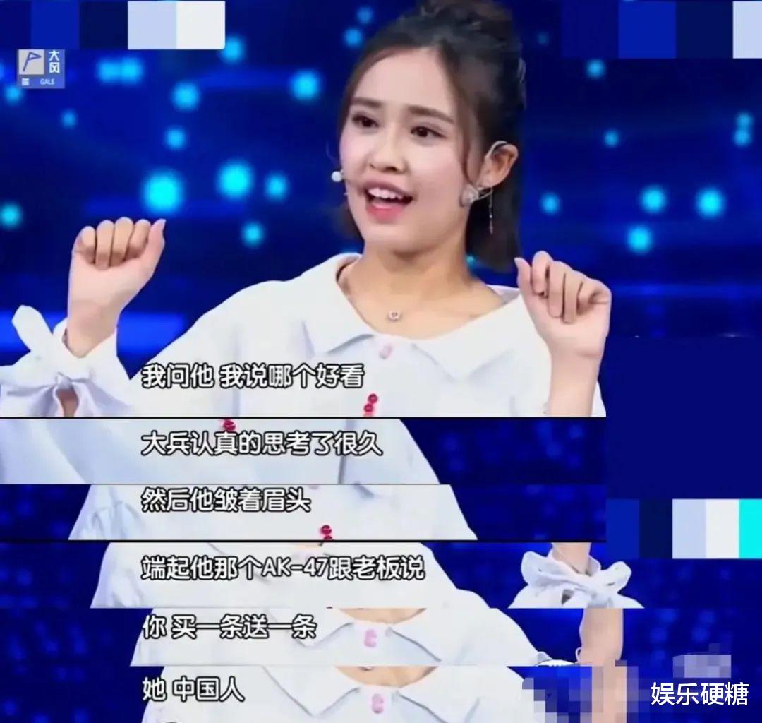 同时期的房琪则在热情讲述她和巴基斯坦大兵的故事。“我问他哪件衣服好看,大兵思考良久皱眉,端起AK47跟老板说,你,买一条送一条,她,中国人。”这个故事既颂扬了两国邦交,又渲染了异国暧昧,唯一受伤的可能是无辜的服装店老板。