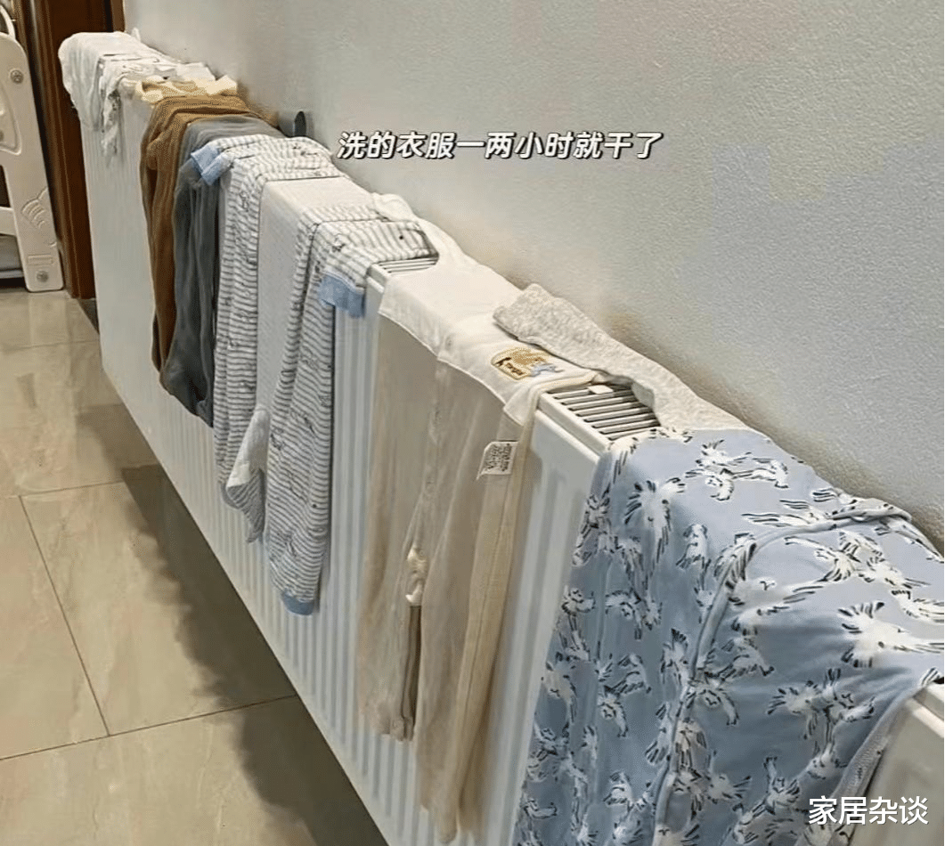 ①、晾衣服。如果阳光不好,没法晾晒衣服,那么我们把洗完的衣服直接搭在暖气片上,基本上第二天就干了,还是非常好用的。