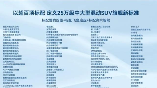坐进新车里,你会发现它延续了一体式三联大屏的设计,里面装的是Lion5.0雄狮智云系统,还搭配了高通骁龙8155芯片。说到配置,这车挺全的,有方向盘加热、50瓦手机无线快充、香氛装置、Lion Melody的23个扬声器音响,还有个W-HUD平视显示器,挺方便的。智能驾驶这块,它标配了L2级的驾驶辅助功能。如果你想要更高级的功能,加个智能驾驶选装包就行,那样就能用NOA高速自动驾驶辅助了。
