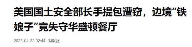 参考信息:财联社2025.4.22——《美国国土安全部长手提包遭窃,边境“铁娘子”竟失守华盛顿餐厅》