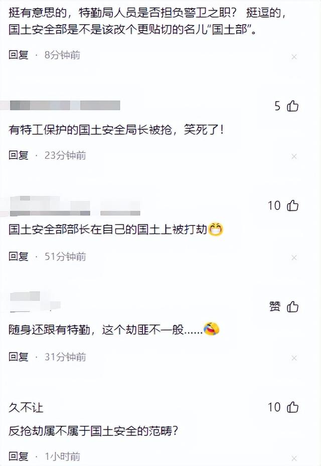 不知道这位边境“铁娘子”如今心中是什么感觉,堂堂的国土安全部长还被抢劫。