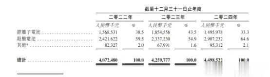 从产品划分来看,双登集团营收主要来自锂离子电池和铅酸电池。2022年至2024年,双登集团锂离子电池收入分别为15.69亿元、18.55亿元及14.96亿元,收入占比分别为38.5%、43.5%及33.3%;更重要的铅酸电池收入分别为24.22亿元、23.37亿元及29.07亿元,收入占比分别为59.5%、54.9%及64.6%,2024年铅酸电池收入占比提升。