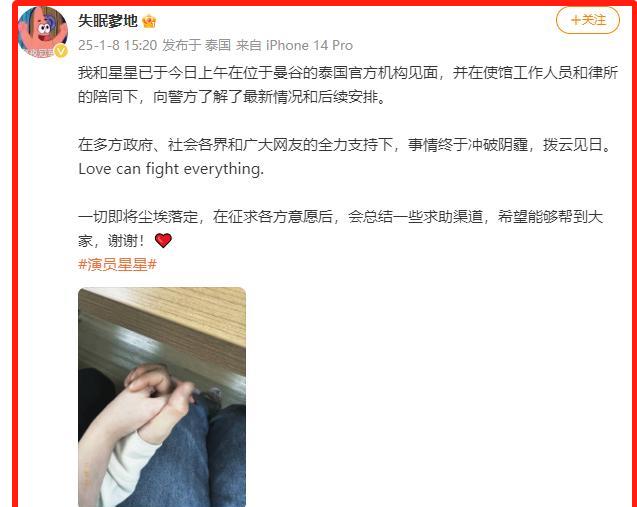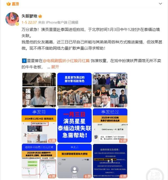 王星能在短时间内被成功解救,绝对离不开他的女友嘉嘉。1月5日晚,嘉嘉发现王星失联后,没有犹豫,直接联系了警方和中国驻泰大使馆,还整理出了王星的详细行程,包括最后发出的定位信息。这些数据成为救援行动的重要线索。
