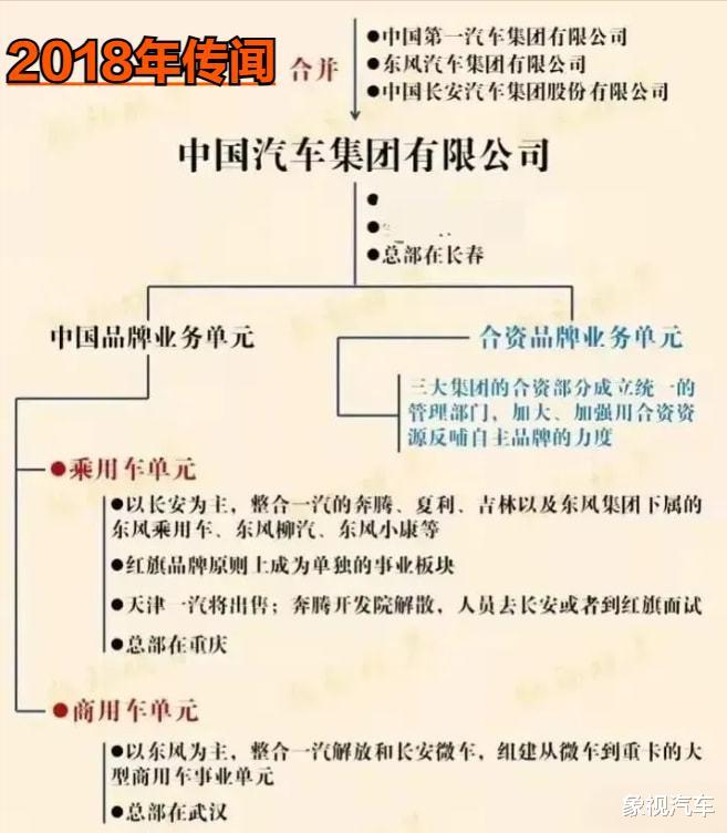 2018年,网络上甚至还传出一汽、东风、长安将整合成立“中国汽车集团有限公司”的消息。但彼时,很快就被官方辟谣。