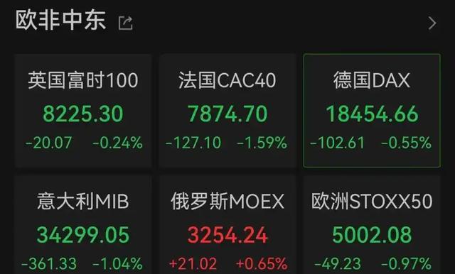 除了美国,欧洲股市也受到了严重影响,欧洲的STOXX50指数跌幅为3.59%,英国富时100指数跌了1.55%,法国CAC40指数下降了3.31%,德国DAX指数和意大利MIB指数也分别跌了3.01%和3.6%。
