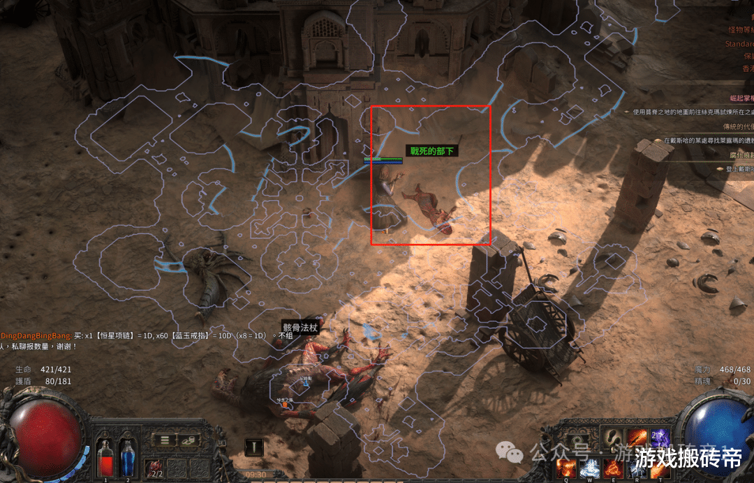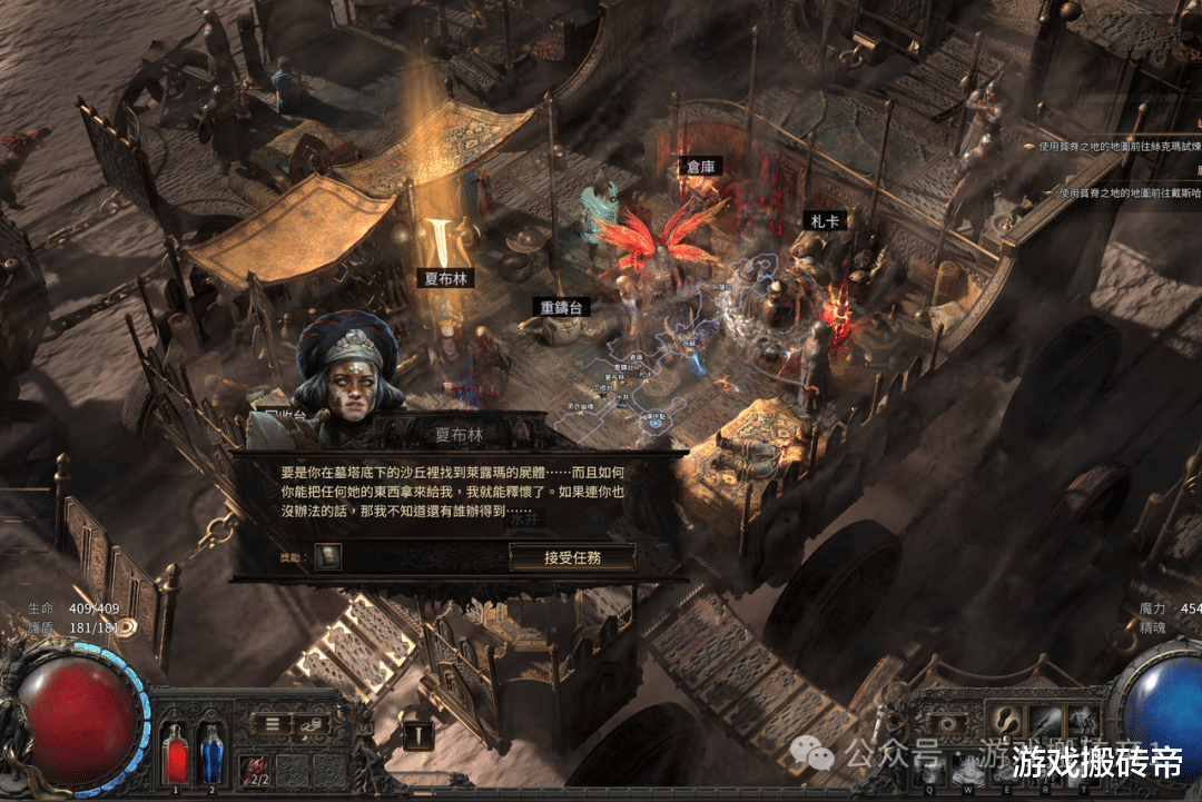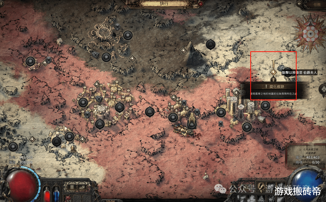 65:继续搜寻找到战死的部下,然后回城交给夏布林可以获得2天赋。这个是个支线任务,然后我们可以通过传送门直接再回到戴斯哈(刚才回城的地方)