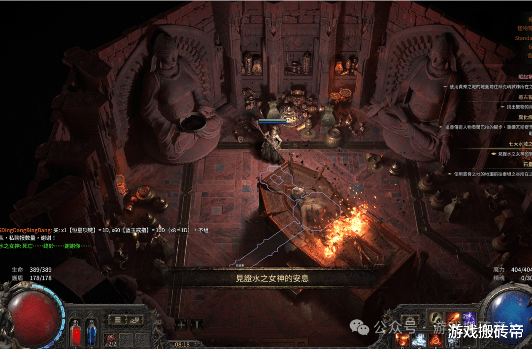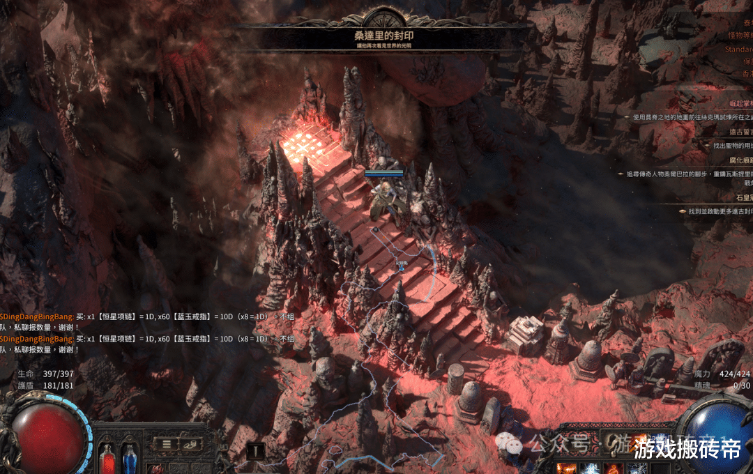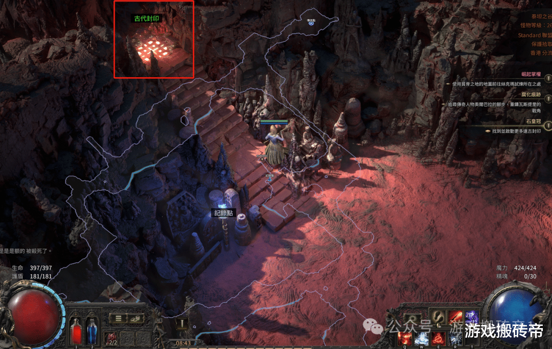 22:在叛徒之路里找到BOSS房间,点击三个符文之印解封BOSS芭芭拉然后击杀,这个BOSS会隐身不动,你看不见他的时候就要去找他的位置