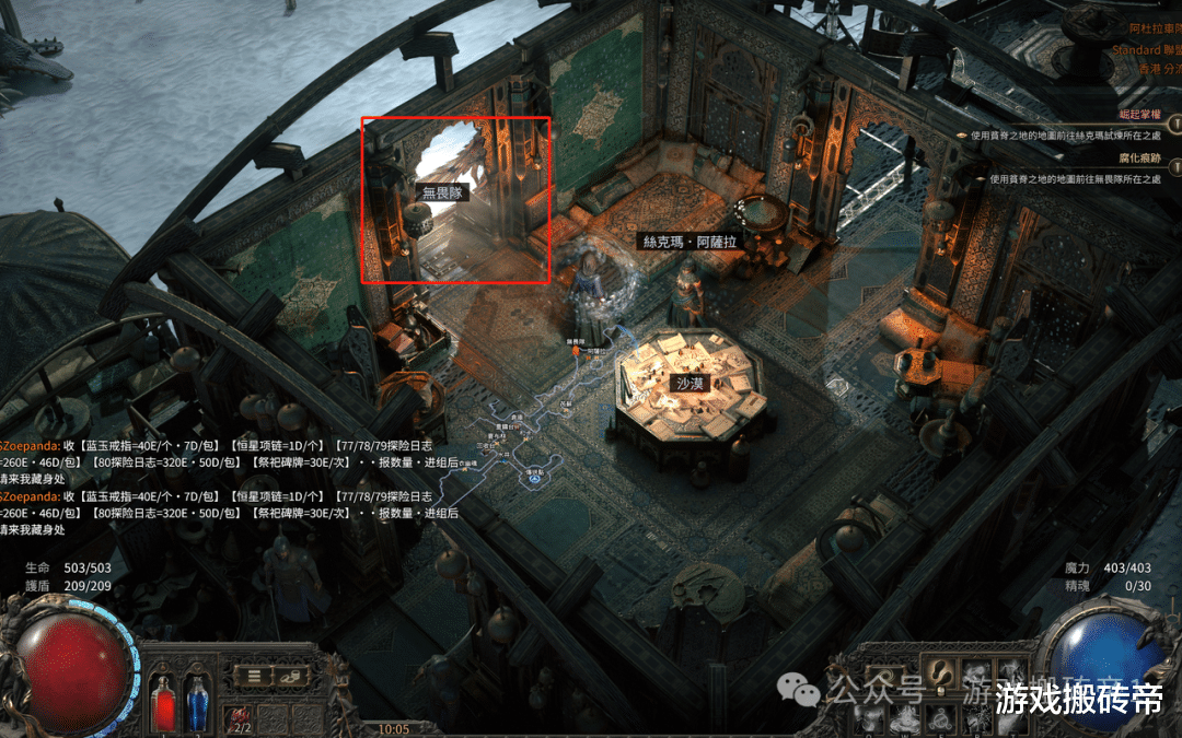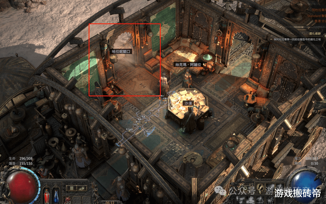 20:然后点沙盘,点击我圈的位置(哈拉妮门口)传送过去