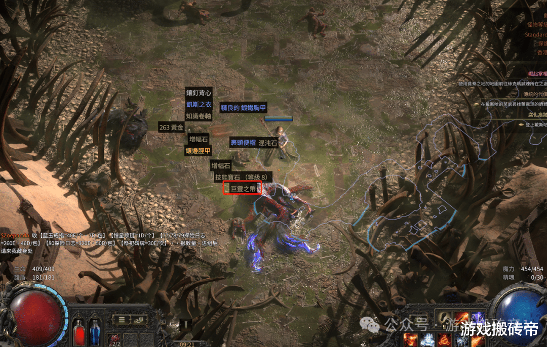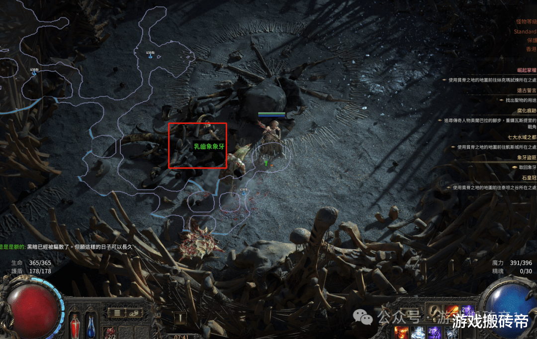 38:在骨坑里找到BOSS并击杀,然后捡起掉落的象牙,接着回城