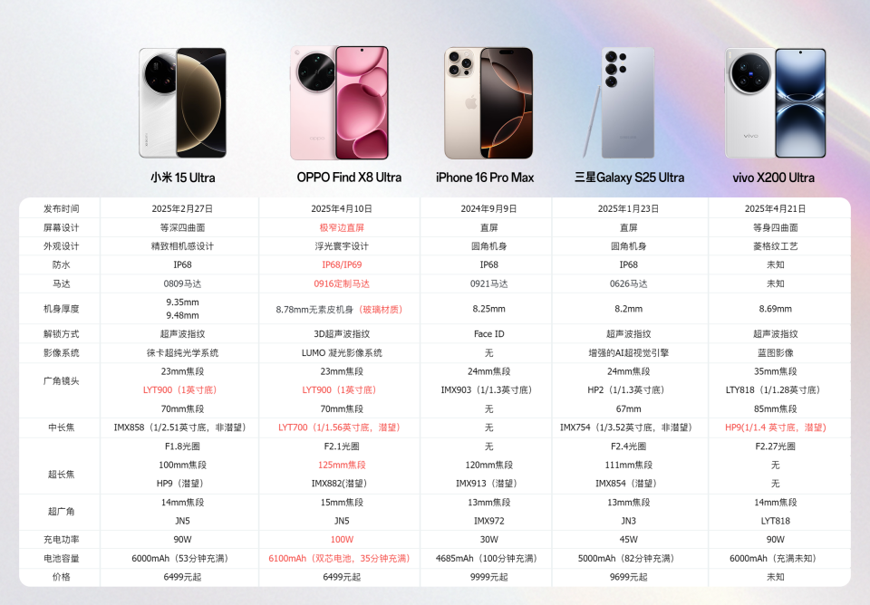 (各家超大杯旗舰参数对比)