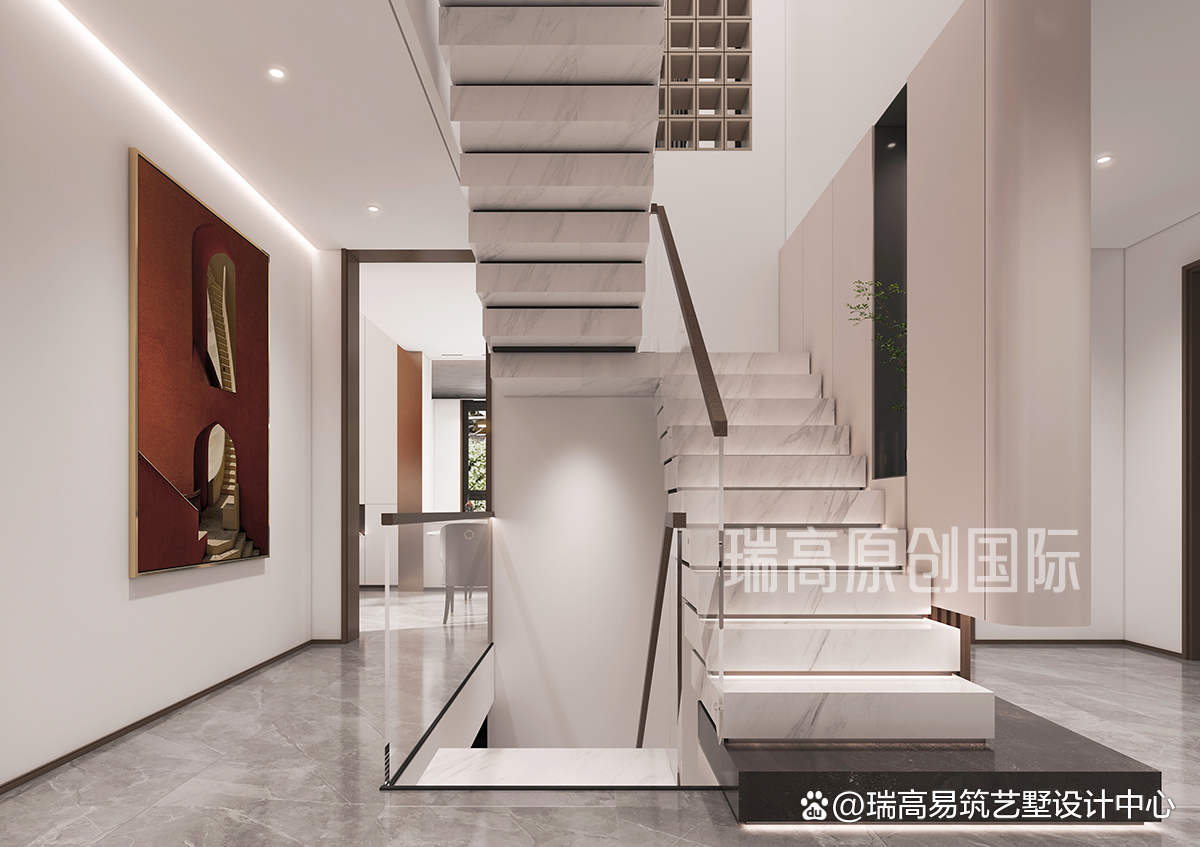 原建筑楼梯位置较为尴尬,在空间居中的位置,造成动线迂回,空间不够通透联动,把楼梯井的位置让出来给通道,客厅位置开门洞,把自然光带到空间内。