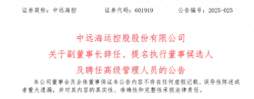 4月17日,中远海运控股股份有限公司发布关于副董事长辞任、提名执行董事候选人及聘任高级管理人员的公告。