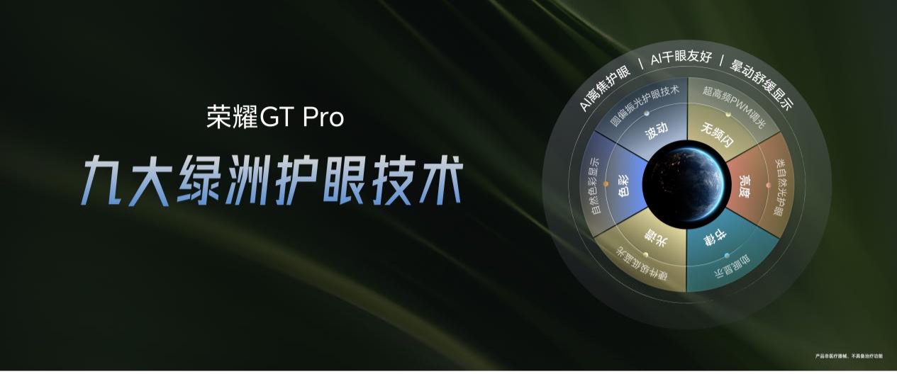 护眼方面,荣耀 GT Pro 支持九大荣耀绿洲护眼特性,从自然光的多个维度进行优化,还具备 AI 离焦护眼等辅助功能,通过德国莱茵全局护眼 4.0 权威认证。其中,硬件级圆偏振光护眼模拟自然光特性,显著降低眼部疲劳;晕动舒缓显示功能在交通工具上能缓解晕动症状,提升出行使用体验。