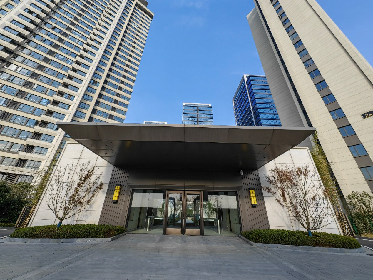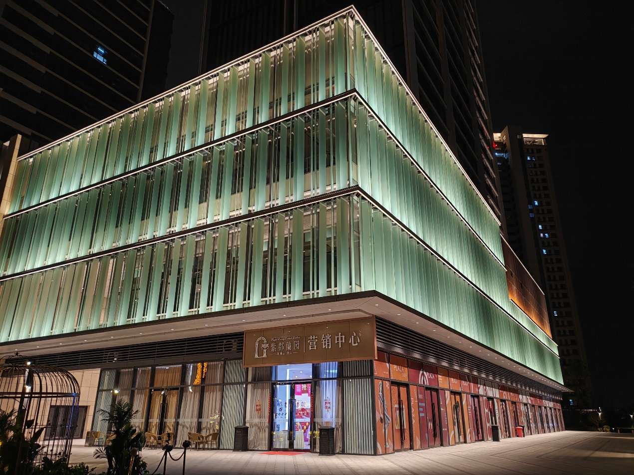 在户外场景2倍镜样张下,整个幕墙结构以及顶部花架铝合金结构依旧非常清晰,建筑的细节设计及做法都能够完全的反映出来,甚至玻璃上的反射的建筑物都没有出现模糊的情况。