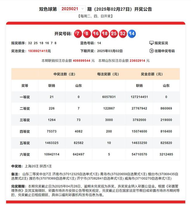 今天是2025年第022期福彩双色球游戏开奖的日子。