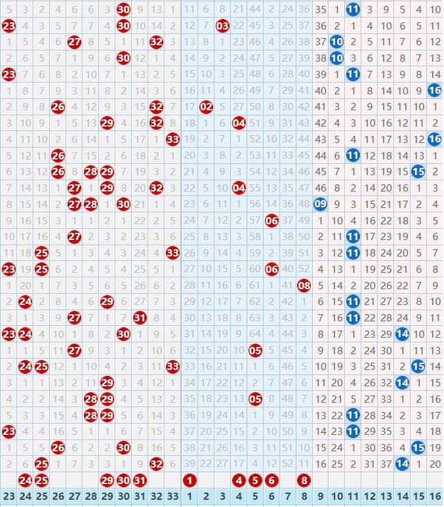 朋友们,到这里咱们的红球号码就分析完了,下面咱们再看看蓝球号码。