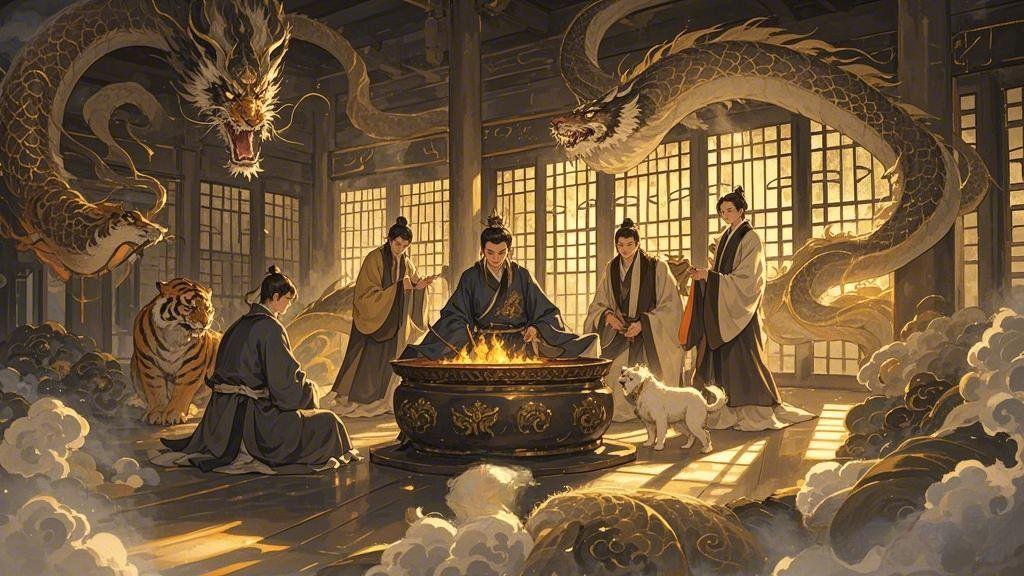 1、丹道祖师魏伯阳,出身世家,却习炼丹、仙道,不思功名。携三个弟子入山炼丹,丹成,白狗试丹,狗死,三个徒弟两个被吓退,只有一个坚定不移,保持道心。最后,魏伯阳,携其与白狗飞升。