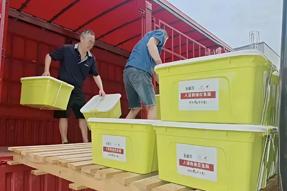 孙颖莎捐赠的物资第一车已送达! 实打实的物品,太值得点赞了。
