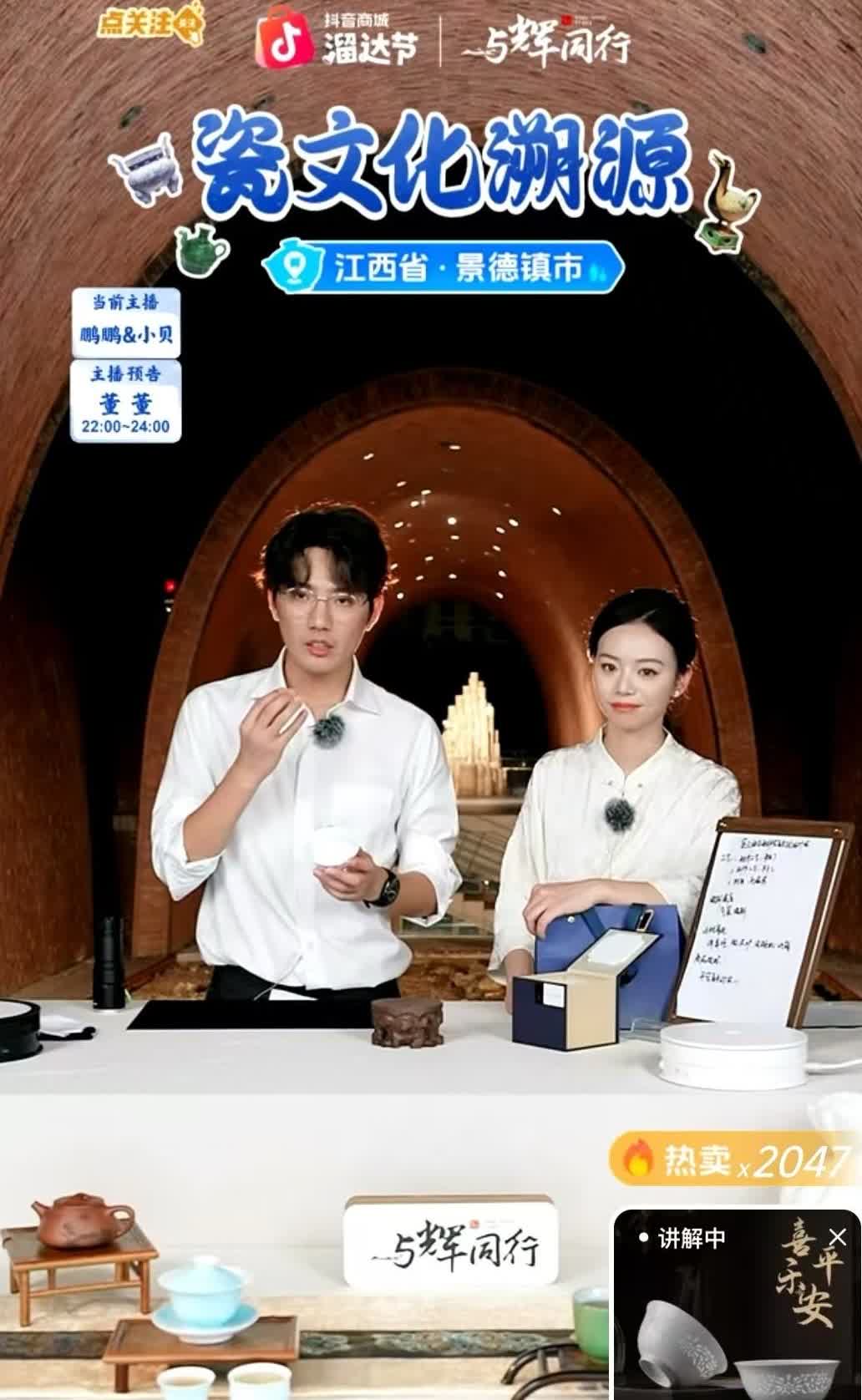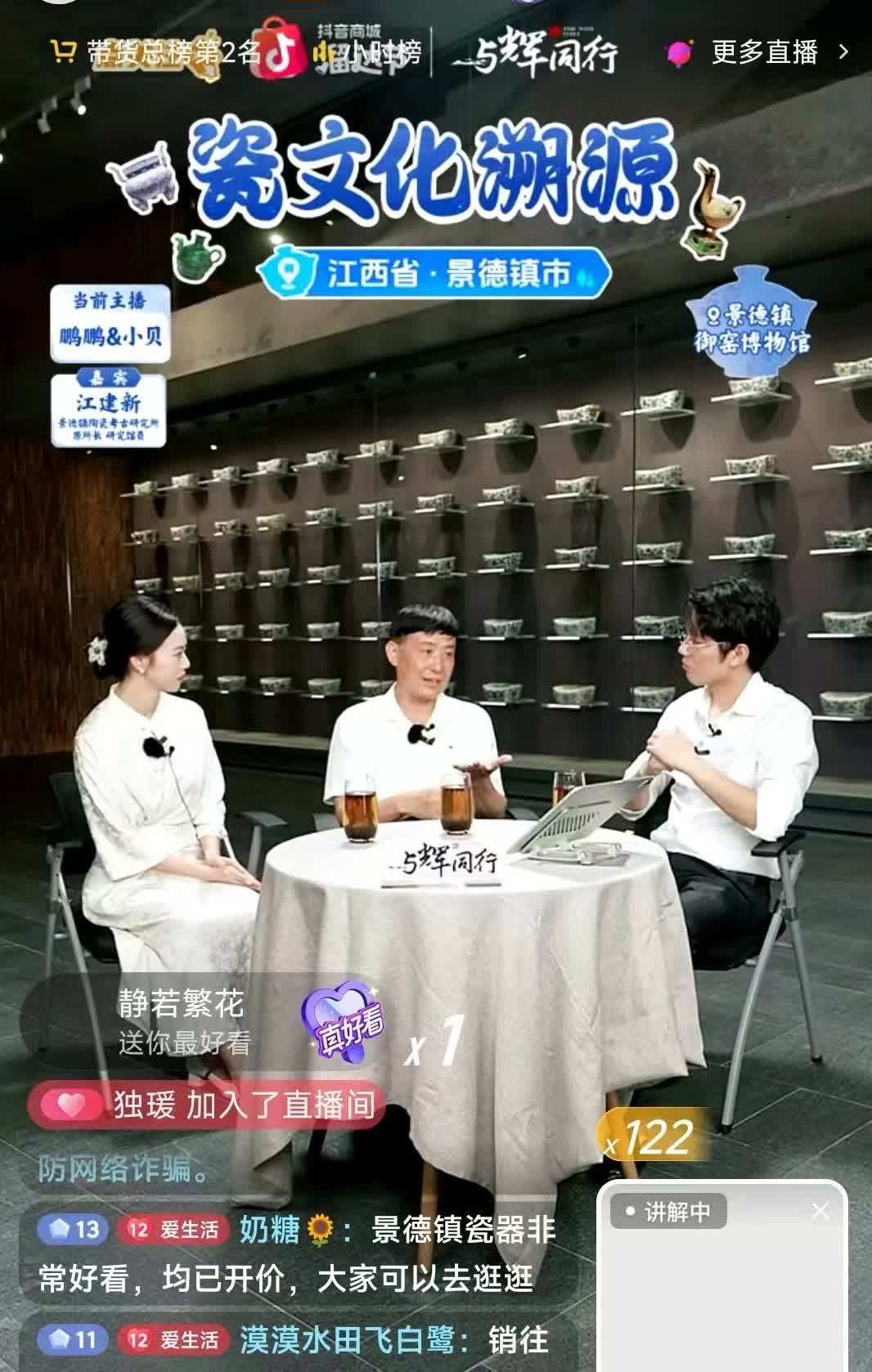 他人不在,却是处处都是他的传说。 昨天鹏鹏、小贝、董董担起了景德镇瓷器的大梁。 大家对他们都是赞不绝口。 戴着眼镜的鹏鹏斯文俊秀、温文如玉。 穿着中式套裙的小贝清丽飘逸、窈窕淑女。 后面出镜的董董语气轻柔,节奏舒缓。 夸奖他们三人的同时,大家还不忘董宇辉, 一方面遗憾他不在,另外一方面夸他会带人, 现在的核心成员都可以独当一面,且各有各的优势。 也许淋过雨的孩子就知道努力为别人撑一把伞了吧。 鹏鹏他们的成功就是董宇辉的成功,他们的优秀也是董宇辉的优秀, 这才是真正的优秀团队。 不过后面鹏鹏和小贝都明显露出了疲态, 在精力旺盛方面,他们似乎都略逊彪哥一筹啊。 主播太优秀了,瓷器太美了, 我动摇了,下单了,期待着呢。