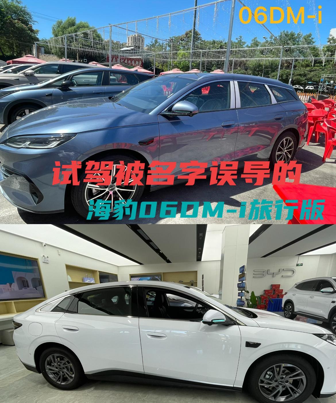 刚听到比亚迪海豹06 上了个旅行版,我还是很好奇到店里一问才知道就是海豹06的混动车,好家伙,名字还可以这么玩,那么这个海豹06DM-i旅行版到底怎么样呢,今天就给大伙唠唠我的试驾感受。 看到海豹06 DM-i旅行版,就是略微带点运动味的轿车,几乎跟海豹06EV差不多,除了感觉大点就是车顶的那个行李架,看到它有着那种说走就走的旅行氛围也拉满了。咱们周末去露营或者旅行还能在上面按个行李箱架啥增加置物量。我试驾的这台车是亚特兰蒂斯灰色销售说还有多色可以选。 推荐购买顶配因为带云撵C,18轮毂,无线充,中央空调8扬声器大屏幕等,动力和续航也是最强的。目前有国补,赠送两年车机流量,两年云服务,五次保养,两年内家庭充电桩安装。顶配12.98万价格也还是可以的,主要是什么都带了,动力和操控跟06Ev差不多,不过空间比06Ev大,特别是后备箱加后座放倒后,再有车顶行李架的加持,对于喜欢旅游需要长续航和大空间的人来说这车还是可以选择的。购买前建议去试驾必定每个人试驾感受会有不同。【来自懂车帝车友圈】