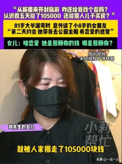 “姜还是老的辣呀!”河南郑州,81岁大爷去旅行,看到路边有个小摊是介绍对象的,他去了,别人给他介绍了个73岁的大姨,大姨第2天就带他去公园坐船,还说会给他做饭,会照顾他,大爷有了恋爱的感觉,认识了四五天,大爷就拿出105,000元给大姨的儿子买房,女儿知道后,向着大爷大喊:这是啥恋爱呀,她是来照顾你的钱,不是来照顾你的。 8月1日小莉帮忙报道,刘女士突然得到81岁的父亲给她找了后妈的消息,她震惊了,父亲都81岁了,她不相信父亲这把年纪了,还能找到女朋友,可她知道整个事实后,不得不佩服那个大姨。 前些日子,刘女士的父亲从新疆到开封去旅游,刘女士是知道这件事的,她觉得父亲81岁了,一把年纪了,如果现在不出去见识见识世面,可能就枉来人间一趟,既然父亲想出去走走,她自然是很赞成的。 就这样,刘女士的父亲就出去旅游了,他在旅游的过程中,自己一个人出来遛弯,正好看到公园的一个小摊在介绍对象。 刘女士的父亲刘大爷,也单身多年了,想到自己81岁了,也是该找个老伴了,他就想碰碰运气,反正是出来玩的,要是找到个女朋友也是一件开心的事情。 他来到了这个小摊,他跟人家说他也想找个对象,媒人很称职,马上一个电话就叫来了一个73岁的大姨。 刘大爷毕竟81岁,这个73岁的大姨保养有方,看起来还是要比刘大爷年轻很多,刘大爷一眼就看上,两人初次见面就聊得很开心。 第2天,这位大姨还约刘大爷到公园去游玩,他们俩坐在小船上,船慢悠悠地往前游荡,刘大爷对面的大姨笑得正灿烂。 大姨说,她的年纪要小一些,她可以照顾刘大爷,还可以给刘大爷做饭。 刘大爷被哄得团团转,没想到一把年纪了,还能遇到爱情,他当时就要大姨做他女朋友,两人开开心心谈起了恋爱。 刘大爷可真是陷入了大姨的甜蜜恋爱中,才恋爱四五天,大姨就跟刘大爷商量婚后的生活,他们俩结婚之后就住在老房子里,大姨的儿子就住在新房里。 可新房还没有买,大姨就跟刘大爷商量,给她儿子买一套房,刘大爷一开心马上去看房,他要给大姨的儿子买房,他们很快就看中了一套房子,刘大爷付了105,000元首付。 买了房之后,刘大爷就想象着和大姨的甜蜜婚后生活,只是没过多久,大姨又找刘大爷要2万元,刘大爷出来旅行,并没有带多少钱,就跟大姨说没钱。 可大姨不甘心,没过多久又问刘大爷要2万元,刘大爷这才意识到自己可能被骗了,这才把自己的事情告诉了女儿。 刘女士一听父亲的故事,吓得赶紧过来找父亲,父亲这哪里是恋爱啊?分明就是被人骗了。这个大姨哪里是想来照顾她的父亲,分明就想来照顾她父亲的钱。 她心里真想骂父亲是个老糊涂,哪里有人恋爱四五天,就给女友儿子买房的。 她去把钱要回来,就联系了大姨的儿子,但是大姨的儿子却假装电话打不通,把电话挂了。 刘女士只好求助调解员,希望那位大姨能够主动站出来,把钱退回来。 那么如何看待刘大爷遇到的事情呢? 首先,刘大爷和大姨才相识四五天,刘大爷就给大姨的儿子买房,如果大姨只是想非法占有刘大爷的钱,并不是想和他过日子,那么她的行为就构成了诈骗罪。 《刑法》第266条规定:骗公私财物,数额较大的,处三年以下有期徒刑、拘役或者管制,并处或者单处罚金;数额巨大或者有其他严重情节的,处三年以上十年以下有期徒刑,并处罚金;数额特别巨大或者有其他特别严重情节的,处十年以上有期徒刑或者无期徒刑,并处罚金或者没收财产。 虽然大姨已经73岁了,但同样也会受到刑事的处罚。 其次,大姨欺骗刘大爷,大姨的儿子也不愿意配合这件事,可见大姨一家的家风不好。 《民法典》第1043条规定:家庭应当树立优良家风,弘扬家庭美德,重视家庭文明建设。 如果家风好,儿子就不会配合母亲做犯法的事情。 那么你是如何看待刘大爷的遭遇呢?