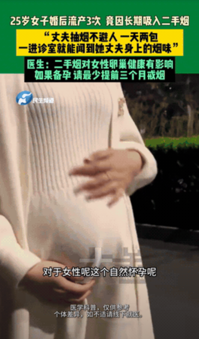 “根本不配当爹!”河南,25岁的女子婚后接连三次流产,查遍身体却怎么也找不出明显病因,这让她很是痛苦!就在医生和女子都十分疑惑时,医生却敏锐地捕捉到陪诊丈夫身上那浓得化不开的烟味儿。原来,这位丈夫是个不折不扣的老烟枪,一天两包烟,雷打不动。更让人心堵的是,无论是夫妻俩备孕时,还是妻子艰难怀孕期间,他在家抽烟从不避人,一口都没戒过!医生:真相大白了! 据大参考7月31日报道:河南郑州,25岁的女子小娟坐在医生对面,心里满是迷茫和痛苦。 结婚后,她怀了三次孕,可每一次都没能保住孩子,接连三次流产,身心都承受着巨大的打击。 她自己做了各种检查,结果显示身体并没有明显的大问题,可就是每次都保不住孩子。 正当她和医生都困惑不解时,一旁陪着的丈夫身上,那股浓重得化不开的烟味儿,让敏锐的医生瞬间找到了关键线索。 仔细一问,真相让人又气又心疼,小娟的丈夫是个老烟民,烟龄很长,每天雷打不动要抽掉两包烟,整整四十根。 更要命的是,他在家里抽烟从不避讳,妻子就在旁边,他也照抽不误。最关键的是,无论是在他们计划备孕的阶段,还是小娟好不容易怀上孕的那些日子,这个丈夫,一根烟都没戒掉过。 医生明确指出,问题很可能就出在这里:丈夫长期、大量吸烟,自己身上携带的浓重烟味和在家里制造的二三手烟环境,正是妻子反复流产的重要诱因。 医生解释得很清楚:丈夫抽烟,危害是双重的,烟草里的毒物,首先会把他自己的精子搞坏,生出些“歪瓜裂枣”。 其次,妻子长期被动吸入二手烟、三手烟,等于她的卵巢和孕育的环境也被这些毒素不停地“熏”,本来好好的“土壤”就变差了。 这两方面叠加起来,让胎儿稳稳扎根、健康长大的希望变得非常渺茫,流产的风险自然大大增加 所以,医生郑重提醒所有想要孩子的夫妻:别侥幸!夫妻双方都要彻底戒烟,而且最少要提前三个月就开始行动! 消息传开后,很多网友坐不住了。 有网友怒斥:“一天两包在家随便抽,备孕怀孕都不停?这哪是当老公当爹的态度,简直是祸害!看着媳妇遭这么大罪,烟就那么难戒?” 还有网友指责:“备孕戒烟是两个人的事!男的觉得不是自己怀就无所谓?孕前孕中都在抽烟,这根本就是不负责任!” 这件事,剥开了很多家庭可能忽略的残酷真相,迎接新生命从来不是妻子一个人的奋斗,丈夫嘴里的烟,飘散的不只是烟雾,更可能是亲手葬送孩子到来的机会和妻子一次次身心俱裂的希望。 戒烟,特别是为了孩子而戒烟,是为人父母最基本也最必要的准备动作之一!它考验的不是意志力,而是爱与责任的分量。 想想吧,连为孩子暂时放下香烟都做不到,又怎能让人相信,你能担得起“父亲”二字背后的重担? 您家哪位平时吸烟吗?可回可要好好说说他了!